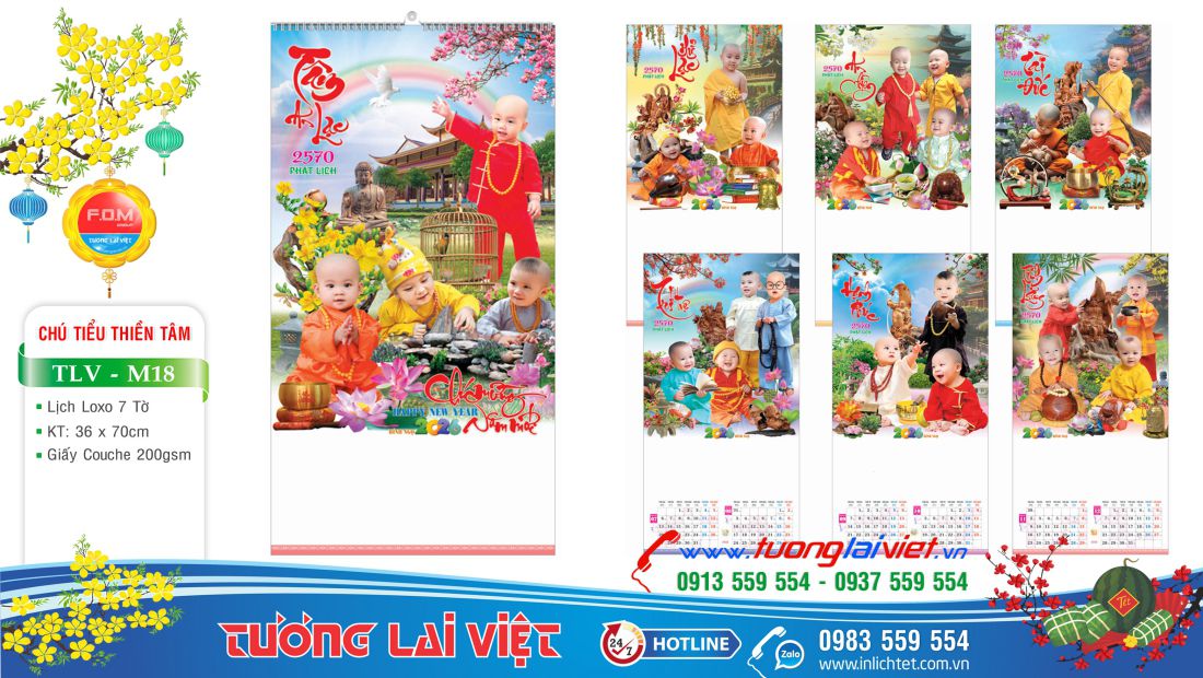 Lịch treo tường 7 tờ Chú tiểu là mẫu lịch lò xo 7 tờ giá rẻ phù hợp với các đơn vị, cơ sở nhỏ lẻ như: Tiệm tạp hoá, Cửa hàng gas, Cửa hàng gạo, Cửa hàng bánh kẹo, Cửa hàng xăng dầu, Cửa hàng vật liệu xây dựng. Mẫu lịch treo tường 7 tờ được nhiều đơn vị chọn In Lịch Tết để làm quà tặng cho khách hàng nhân dịp cuối năm.